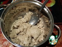 1)Замачиваем желатин в 150 мл. воды. 2)Набухший желатин нагреваем в микроволновке до растворения, затем остужаем. 3)Халву выкладываем в миску и хорошенько разминаем в крошку. |