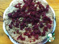Выкладываем на корж большую часть малины. |