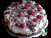 Покрываем кремом и украшаем малиной и шоколадной стружкой. |