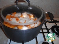 Накрываем крышкой и ставим на медленный огонь. пока на дне кастрюли не останется тонкий слой сиропа. |