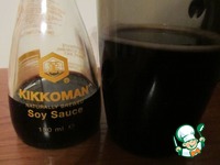 Растворимый кофе развести в чашке с горячей водой и сахаром. Подготовить соевый соус Киккоман. |