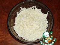 Брынзу натереть на крупной терке. Если брынза сильно соленая можно добавить какой-нибудь другой твердый тертый сыр. Мне, слава богу, этого делать не пришлось... |