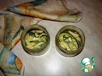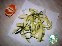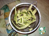 Цуккини режем тонкими лентами ножом для чистки овощей, раскладываем в большое сито и солим. Оставляем на 10 минут |