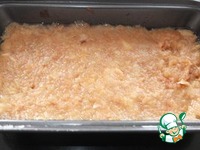 На дно формы, смазанной маслом выкладываем половину теста |