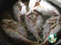 1. Рыбу почистить, разрезать вдоль спины и раскрыть как книжку. Хорошо обсушить бумажными полотенцами, посолить-поперчить, обвалять в муке. |