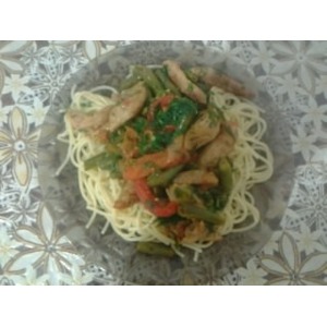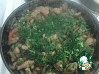 Описание: Мясо, жаренное со свежими овощами.