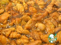 1. Курицу порезать на небольшие кусочки и залить растительным маслом. Разогреть сковороду и обжарить курицу на достаточно большом огне до золотистого цвета. Убрать со сковороды. |