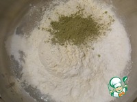 Муку смешать с разрыхлителем и чаем. Добавить в мятную смесь и хорошенько перемешать. |