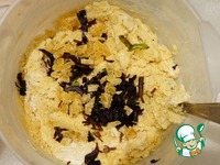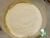 Добавить муку и разрыхлитель (у меня мука самоподнимающаяся, я разрыхлитель не добавляла), слегка перемешать. |