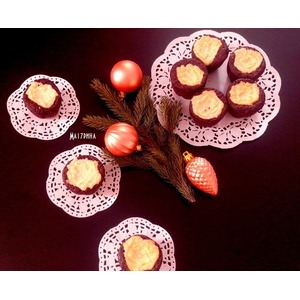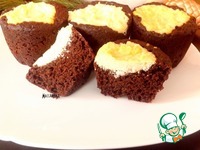 В подготовленные формы для выпечки выложить шоколадное тесто, сверху - в серединку - по 1,5-2 ч. л. творожного крема. |