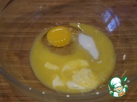 Смешать яйцо с сахаром, солью, содой и маслом. |