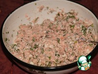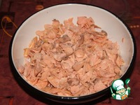 Готовую рыбу "растрепать" руками на маленькие кусочки, |