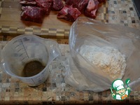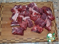 Нарезаем говядину и хорошо солим (оставляем на время просолиться) |