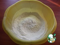 Смешать просеянную муку, разрыхлитель, соду, соль, сахар и ванилин |