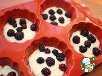Формочки смазать растительным маслом, выложить в каждую немного теста (примерно по 1 ст. л.) и добавить ягоды ежевики |
