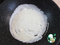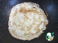 После того, как блинчик поджарился с одной стороны, деревянной лопаткой переворачиваем на другую и дожариваем 2-3 секунды. |