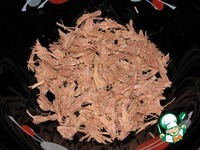 Соленый огурец нарезать мелким кубиком и посыпать на говядину. Смазать немного соусом. |