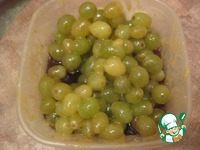 Ягоды винограда обобрать с грозди. Мёд взбить с соевым соусом, добавить к ягодам и дать постоять минут 15 |