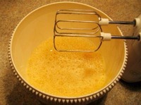 Разбиваем 3 яйца в миску, добавляем соль и соду, смешиваем миксером. |