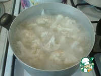 Цветную капусту промыть холодной водой, разобрать на соцветия, залить холодной водой, поставить на огонь. |