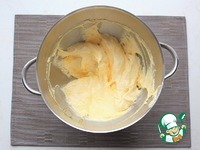 3. Постепенно ввести эту смесь в сливочное масло, хорошо взбить, затем добавить мед. |