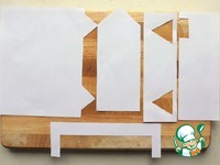 6. Пока тесто охлаждается, готовим трафареты для домика. У меня получились вот такие: |