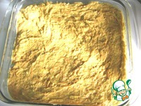 Квадратную форму смазать маслом (можно застелить бумагой, если не уверены) и выложить тесто. У меня форма 21х21. |