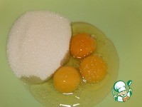 И так приступим. Яйца взбить с сахаром и щепоткой соли... Добавить творог и хорошо перемешать... |
