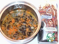 Можно добавить базилик, шафран и варить на слабом огне под крышкой в течение 30 минут. Затем добавить лук с морковью, чеснок, сливочное масло и готовить еще 20 минут. |