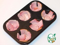 Разогреваем духовку до t 190 С. Достаем формочки для выпечки, лучше силиконовые, их не надо смазывать маслом. В каждую ячейку раскладываем бекон. |