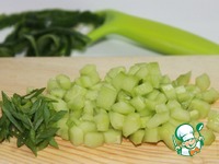 Огурец очистить, разрезать вдоль пополам и с помощью чайной ложки выбрать семена. Мякоть огурца нарезать кубиками. Лук нарезать тонкими колечками. |