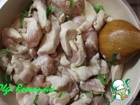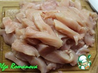 Грудку нарезаю небольшими кусочками. Солю и перчу по вкусу. |