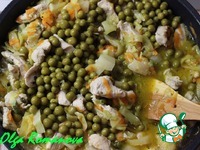 Затем я переливаю бульон со сковородки с курой в овощи. Овощи тушу в бульоне почти до готовности. |