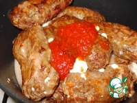 Поджаренные биточки переложить в кастрюлю для тушения. Добавить кетчуп и сметану, размешанную с кипяченной водой. Биточки должны быть почти покрыты жидкостью. |