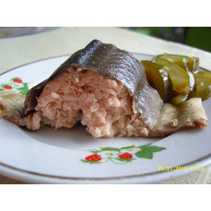 2) Рыбу почистить, положить в кастрюлю хребтом вверх, залить водой с приправами по верхнюю часть хребта, оставить на 12 часов.