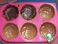 Разливаем шоколад в силиконовые формочки, так чтобы он покрыл все стенки. Ставим формочку с шоколадом на полчаса в морозильную камеру и ждем, когда он застынет. |