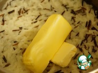 Когда рис готов, снимаем с огня и добавляем маргарин, перемешиваем, оставляем слегка остыть. |