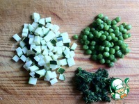 Размораживаем горошек и шпинат. Цуккини режем мелкими кубиками. |