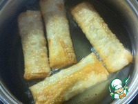 Обжариваем роллы во фритюре. |