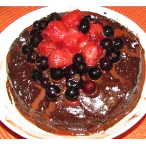 Готовый пирог украсить на ваш вкус. Я полила шоколадным ганашем и украсила размороженными фруктами. Приятного аппетита! |