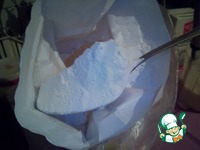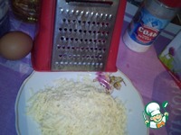 В молоко добавить сыр, соль, соду, яйцо и четыре ложки муки с горкой. |