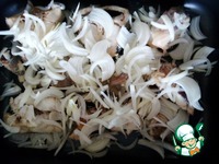 Обжаренную рыбу выложить в один слой в форму для запекания. Сверху распределить нарезанный лук. |