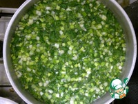 Кинзу тоже и выкладываю к луку, т. к. закладывать в суп я их буду вместе. |