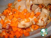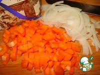 Морковь с луком почистила. Лук порезала полукольцами, а морковь толстыми кусочками. |