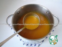 Готовую тыкву пюрировать блендером, не вынимая из отвара. |