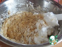 Взбить три белка до тугих пиков и осторожно вмешать в тесто. |