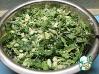 Смешала все в большой миске, хорошо посолила и немного помяла руками. |