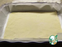 На дно керамической формы, выстеленной пекарской промасленной бумагой, уложила лист теста. |