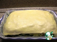 Так и продолжала: слой теста, масло, начинка. Закончила тестом, получилось у меня 6 слоев, смазала маслом - и в духовку, нагретую до 180 град., на 40 - 50 минут. |