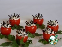 В нафаршированные помидоры вставляем рисинки (конечно, больше для красоты)), на вкус это не повлияет. Но такие помидорчики очень привлекают детей. |